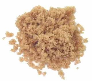 Brown sugar is an unrefined or partially refined soft sugar consisting of sugar crystals combined with molasses. Brown sugar is produced similarly to white sugar, with two exceptions. In some cases its crystals are left much smaller than for white sugar, and the syrup or molasses is not washed off completely. Brown sugar contains from 3.5% molasses (light brown sugar) to 6.5% molasses (dark brown sugar). Brown sugar has a distinct flavour which artificial sweetners can't duplicate.